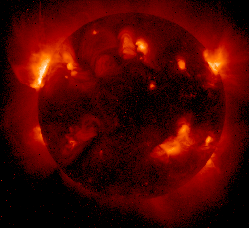 The Sun produces numerous sunspots, flares, and coronal mass ejections on a daily basis. Radio communications, power distribution, orbiting spacecraft, and even the weather are all affected by an active Sun here on Earth.